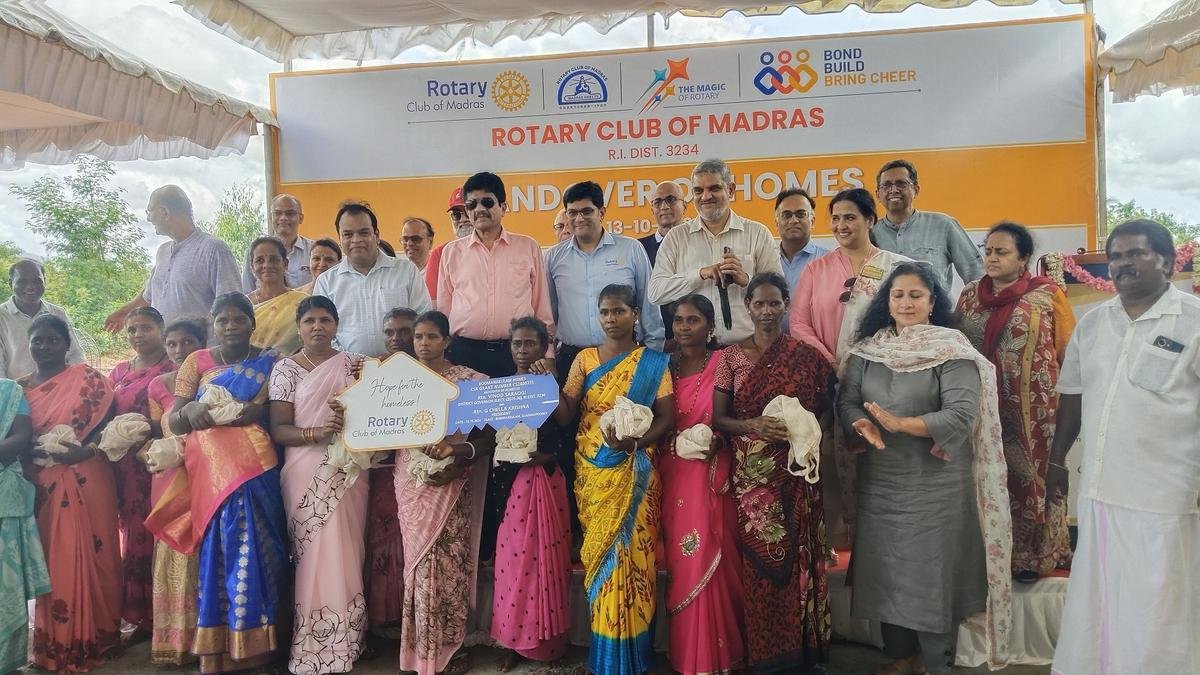 Rotary Club of Madras handed over 29 new houses to Irular community people at Boomanjikulam village near Gummidipoondi on Sunday. | Photo Credit: Special Arrangement