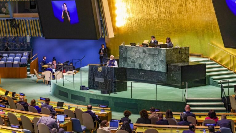 Prime Minister Narendra Modi speaks at the “Summit of the Future” on the sidelines of the U.N. General Assembly meeting on September 23, 2024. Photo: