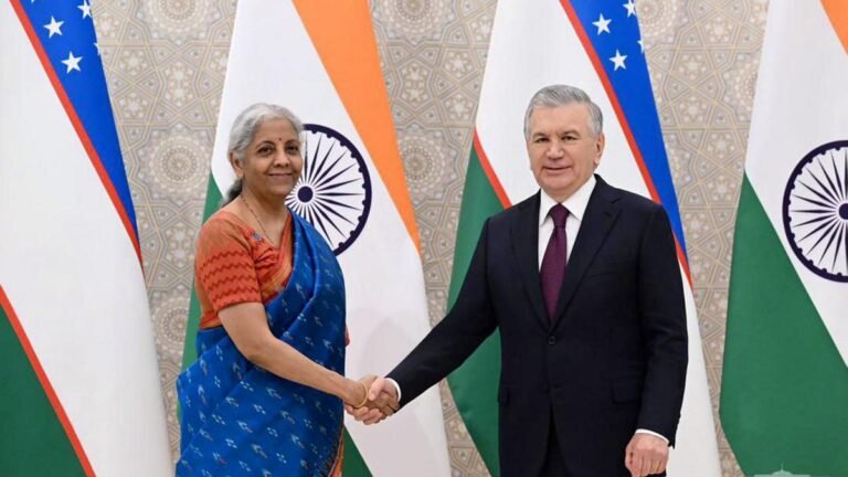 Union Minister for Finance and Corporate Affairs Nirmala Sitharaman meets President of the Republic of Uzbekistan Shavkat Mirziyoyev, on the sidelines of the 9th Annual