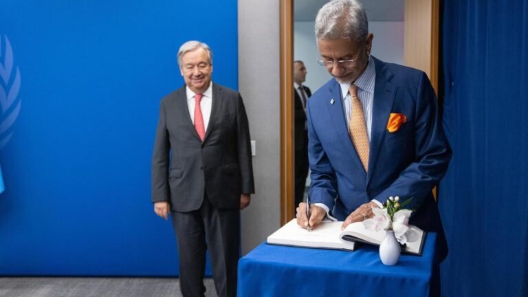 External Affairs Minister S. Jaishankar with United Nations Secretary-General Antonio Guterres, in New York, in the U.S. | Photo Credit: PTI External Affairs Minister S.