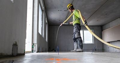 Pumping floor levelling compound is a demanding procedure and takes up a great deal of space due to the equipment involved.