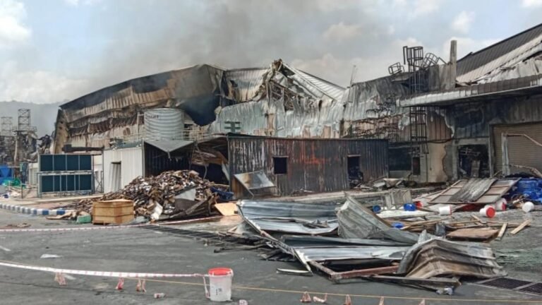 The fire that broke out at the Tata Electronics facility at Nagamangalam in Denkanikkotai in Krishnagiri district being put out by 10 fire vehicles |