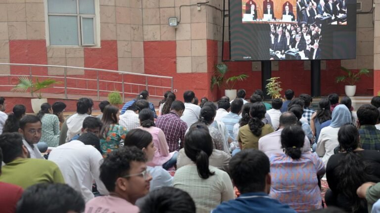 Protesting doctors at RML Hospital watching the Supreme Court proceedings in New Delhi on Tuesday. | Photo Credit: SHASHI SHEKHAR KASHYAP The Federation of Resident