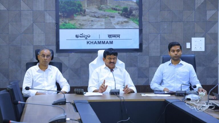 Minister Ponguleti Srinivas Reddy along with chief secretary A. Santhi Kumari held a video conference with the collectors on Tuesday (August 20, 2024). | Photo