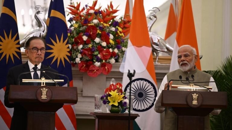Prime Minister Narendra Modi with his Malaysian counterpart Anwar Ibrahim during a meeting at Hyderabad House in New Delhi on August 20, 2024. | Photo