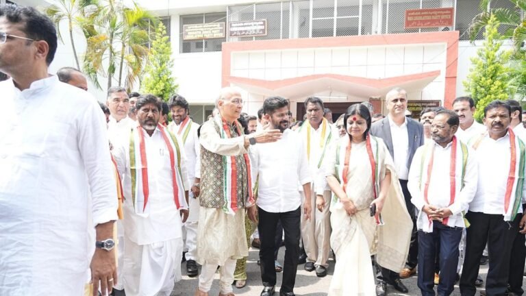 <!–[if IE 9]><![endif]–><!–[if IE 9]><![endif]–> Congress Rajya Sabha nominee Abhishek Manu Singhvi along with Telangana Chief Minister A. Revanth Reddy, Deputy CM Bhatti Vikramarka and