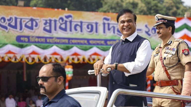 Assam Chief Minister Himanta Biswa Sarma during the 78th Independence Day celebration at Khanapara, in Guwahati. | Photo Credit: PTI GUWAHATI Assam Chief Minister Himanta