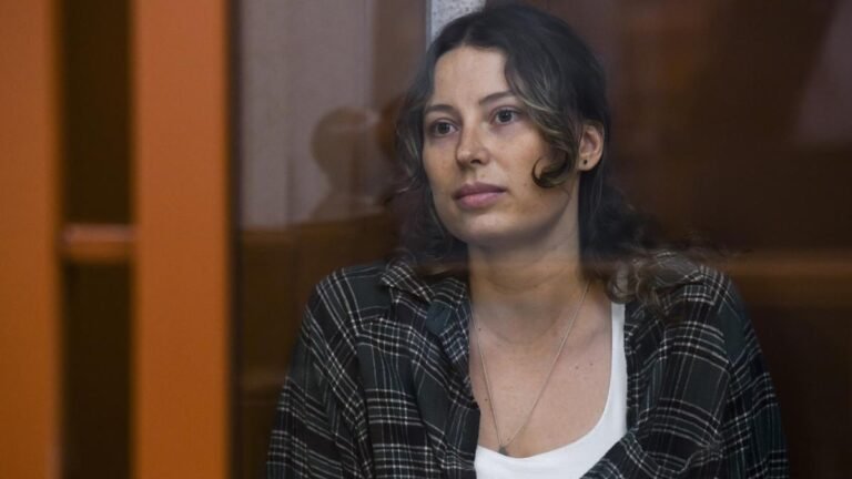 Ksenia Karelina, also known by the last name Khavana, sits in a defendant’s cage in a court in Russia on June 20, 2024. | Photo