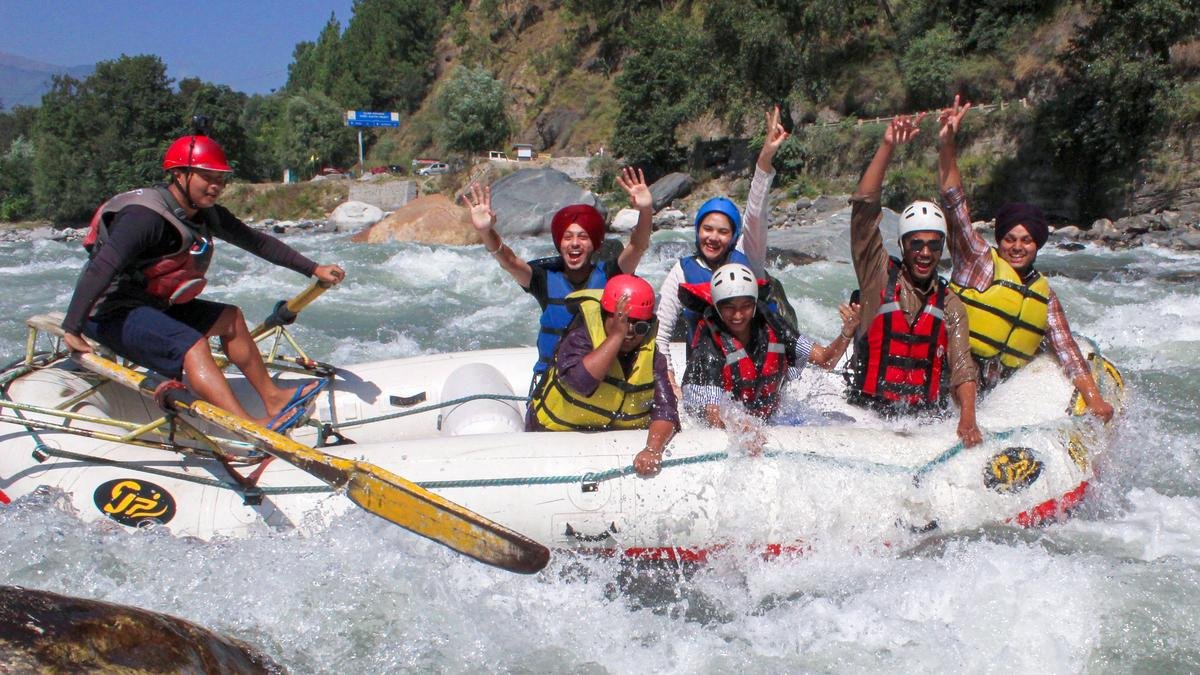 Tourists enjoy river rafting on the waters of Beas river, in Manali.