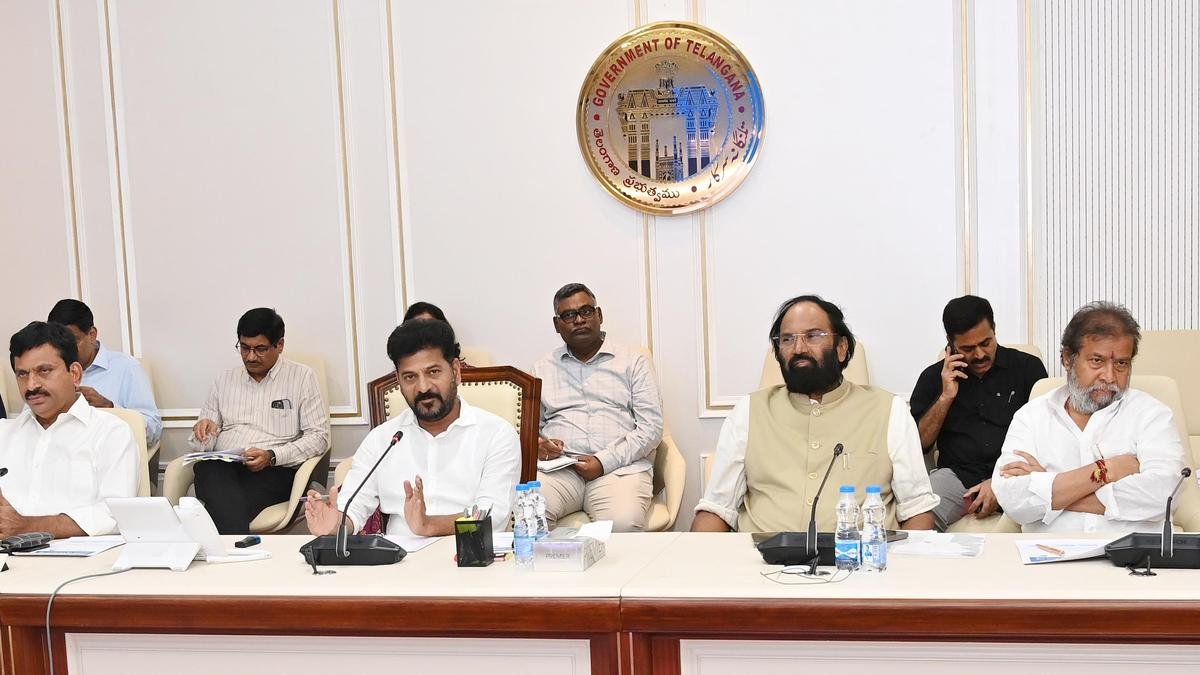 Chief Minister A Revanth Reddy reviews the progress of work on Digital Health Cards in the State with ministers Uttam Kumar Reddy, Ponguleti Srinivas Reddy, Damodar Raja Narsimha and Ponnam Prabhakar and Chief Secretary Shanti Kumari in Hyderabad on Saturday (September 28, 2024).